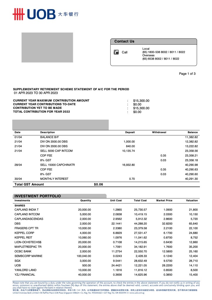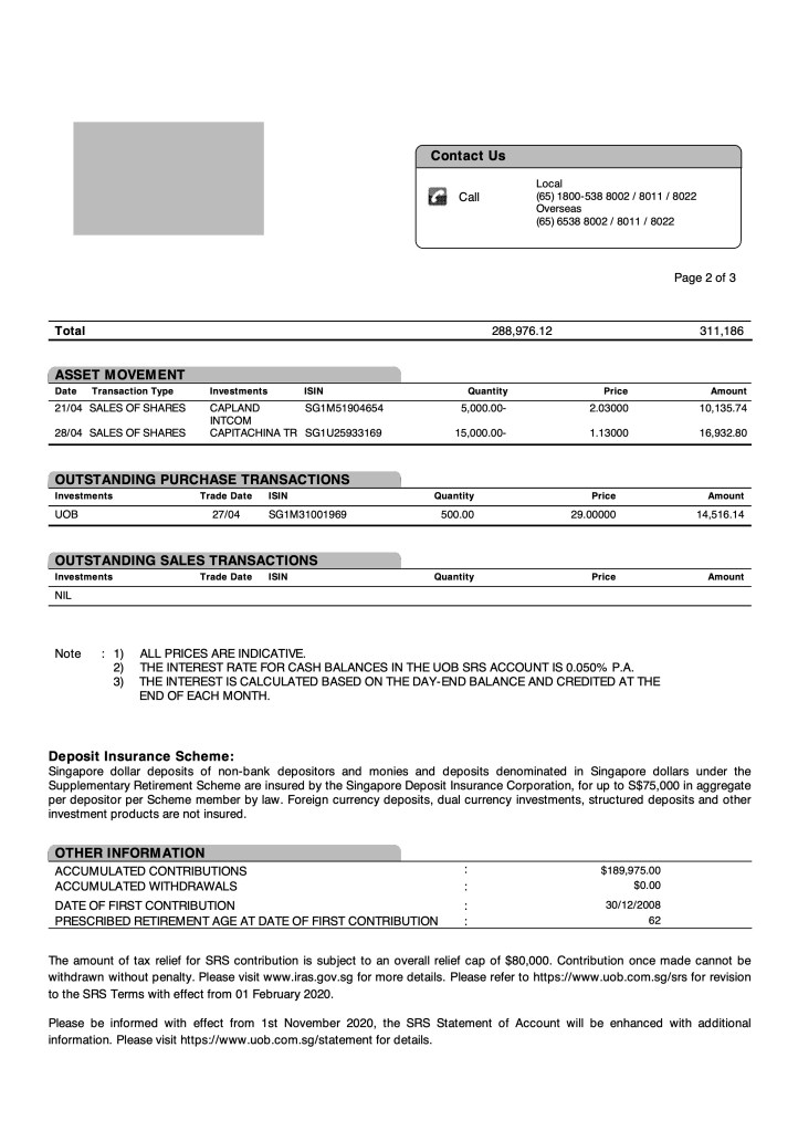 There was also some reposition of the SRS Fund during the month as I completely dispose of Capland China Trust to reduce my exposure to the REIT sector. Together with a reduction in Capland Integrated Commercial Trust, I use the proceeds to add to the Fund’s UOB position analysing that it should out perform after its completion of the purchase of retail banking business from Citi in the medium term.