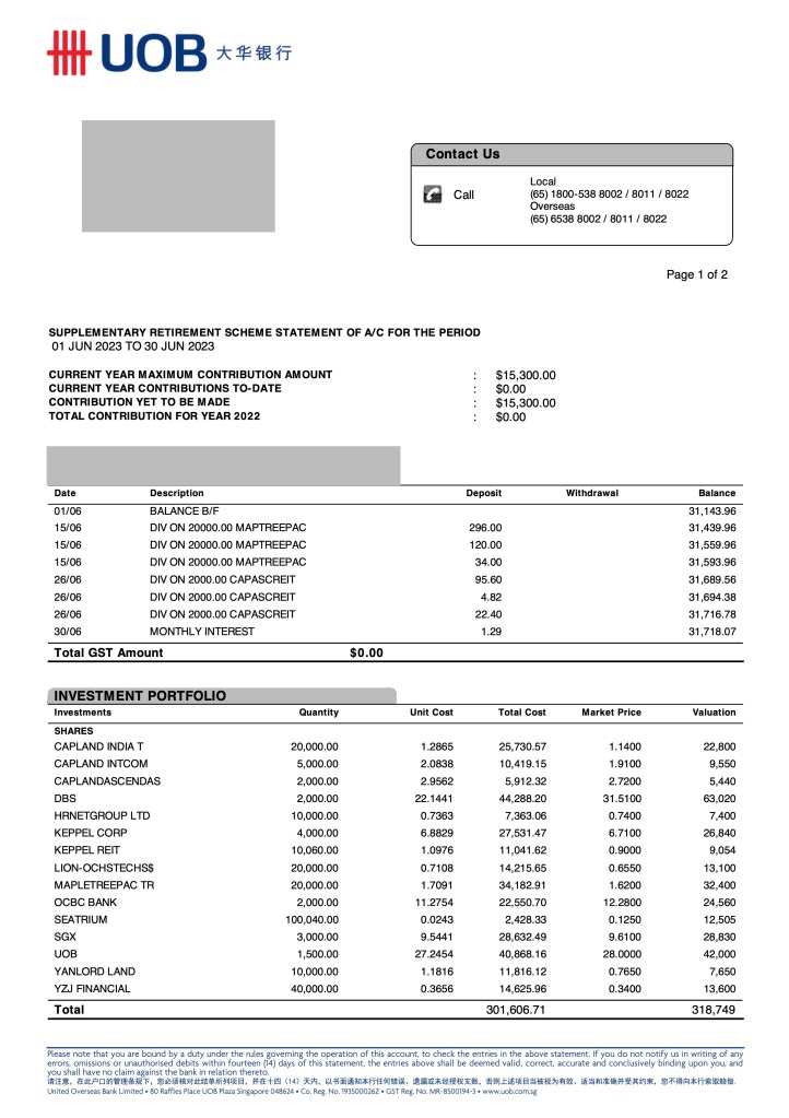 Dividend in 1H23 hit a record $10k with similar dividend expected in the later half mainly due to higher interest margin from banks. I anticipate the banking sector to raise its dividend as local banks are finding it hard to reallocate their profits to make lucrative loan in the current environment.