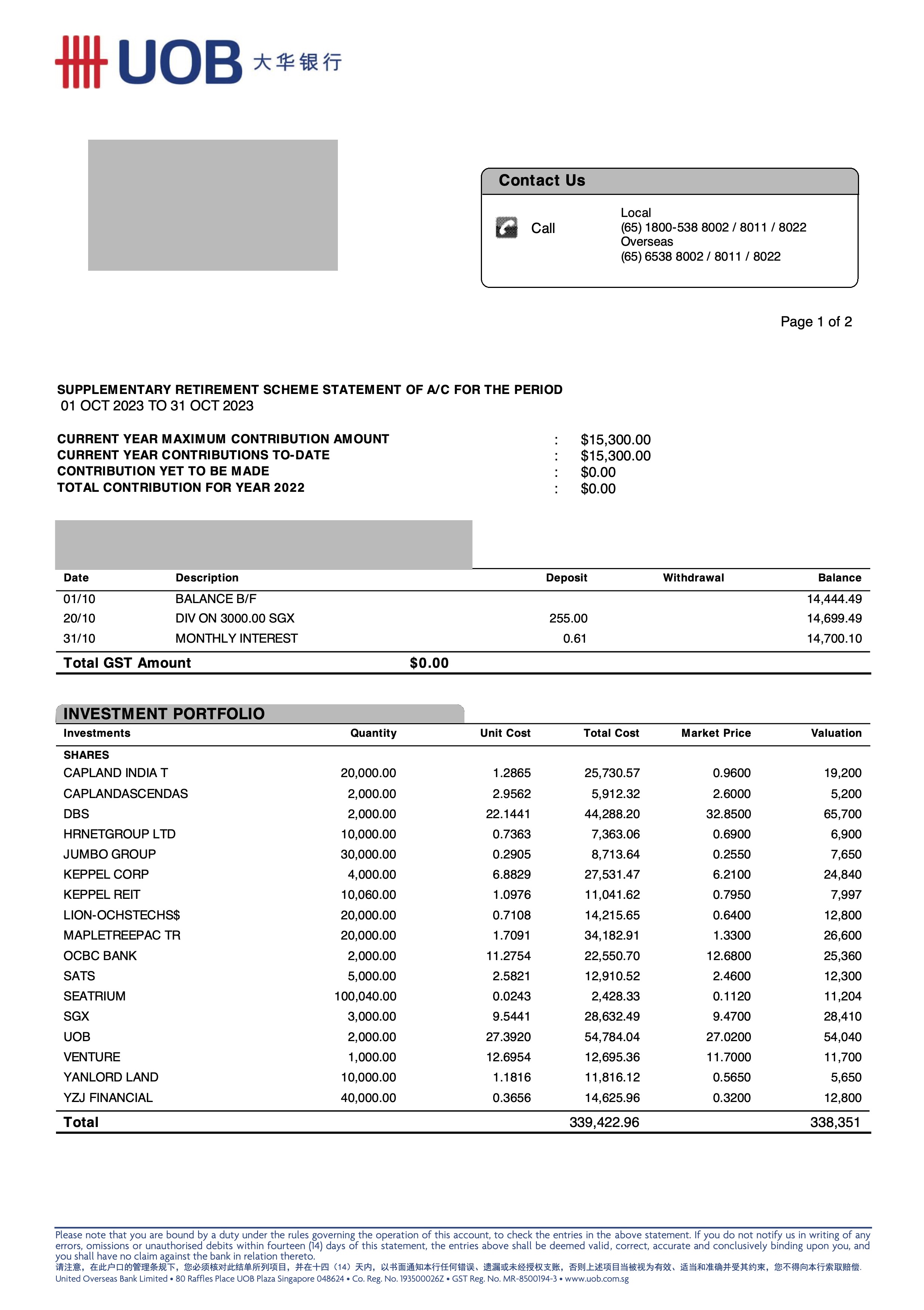 There are however no activities for the SRS Funds in October despite the amount of blood on the street as I aim to start building a reasonable cash buffer for the fund while interest rates remains elevated.