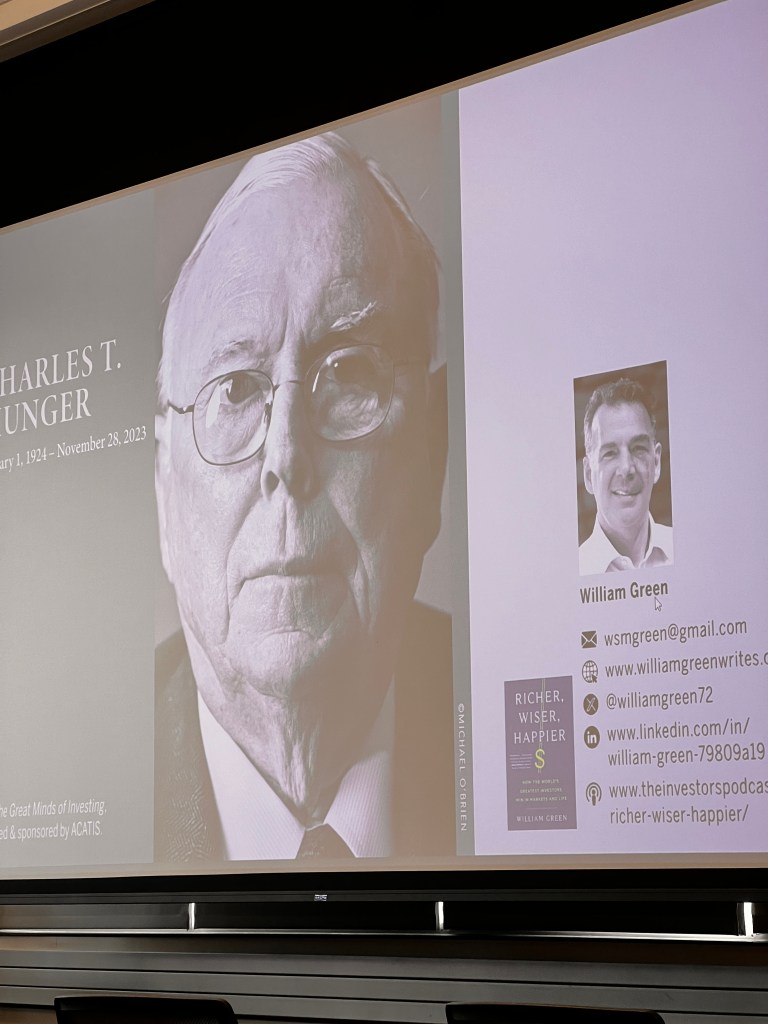 The lecture provided by William Green on the late Charlie Munger was inspiring and there were many takeaways on how one can live a truly fulfiling life.