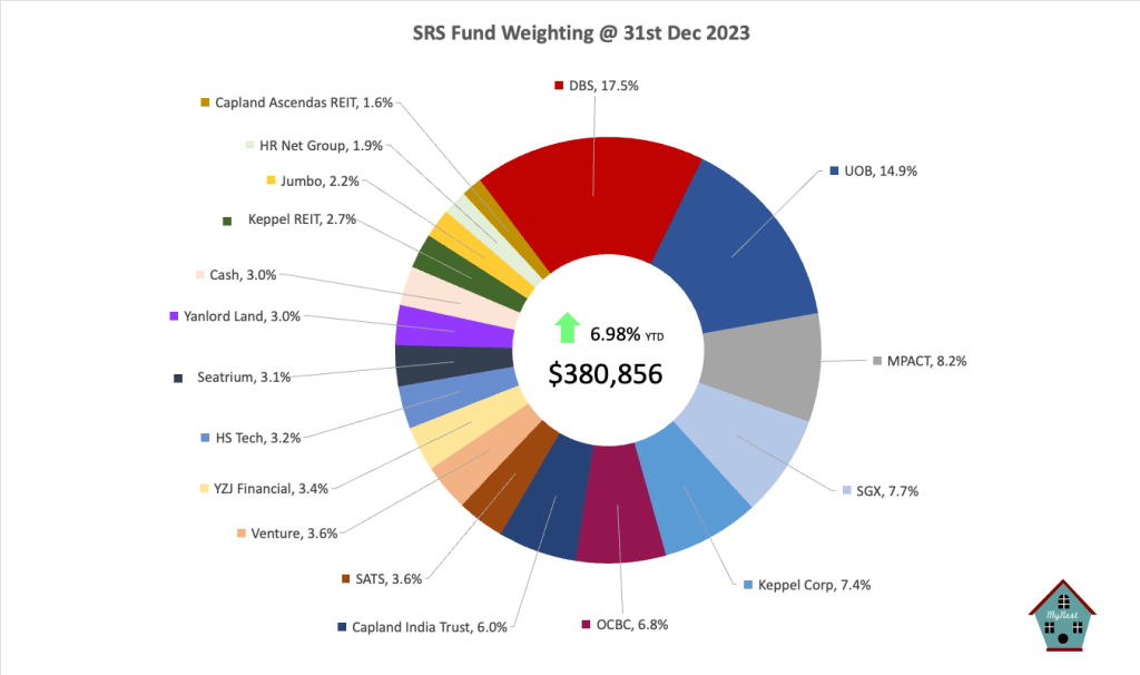 This rally enables the SRS Fund to achieve a decent return of nearly 7% for the year. While this pales in comparison to indexes like the Nasdaq 100 or even the S&P, the SRS Fund comfortably beats the STI (With dividend reinvested) by 4.11%. The SRS Fund’s 5-year cumulative return of 31.7% also outperforms the STI index return of 19.2%.
