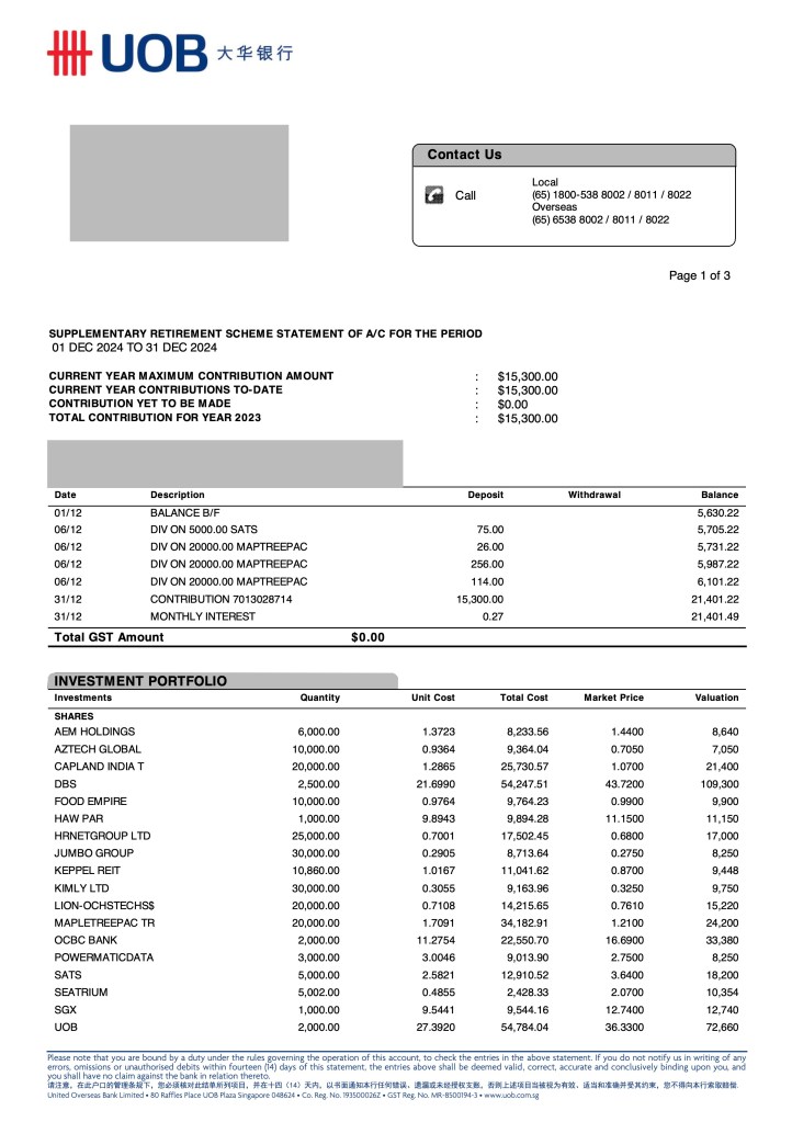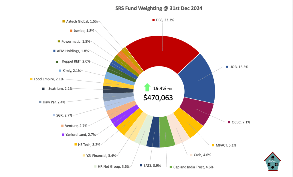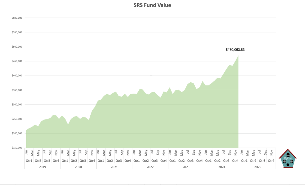With the year-end injection of another round of full contributions of $15,300. The SRS Fund ended the year with a record $470,063.83. While the half-a-million mark is within reach, there is no hard target of how much value the SRS Fund should be worth in X number of years. Market valuation will fluctuate, and the fund value should only be use as a guide on how well the fund is doing over a period of time instead of a point in time.