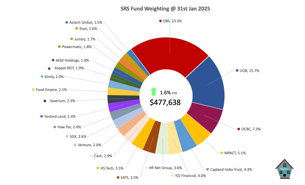 The SRS Fund continued its momentum from last year as it moved up 1.6%. This is fairly inline with the STI Benchmark of 1.8% increased.
