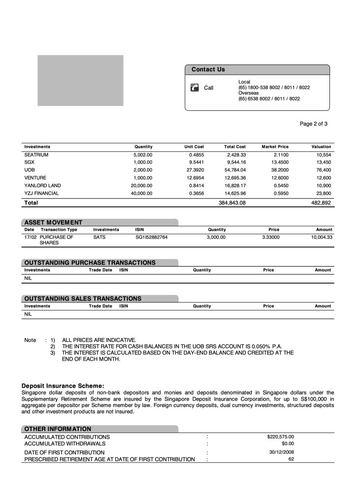 Finance, being a big part of the Singapore economy continues to dominate The SRS Fund segments. I am personally comfortable with finance being around 50% of portfolio.