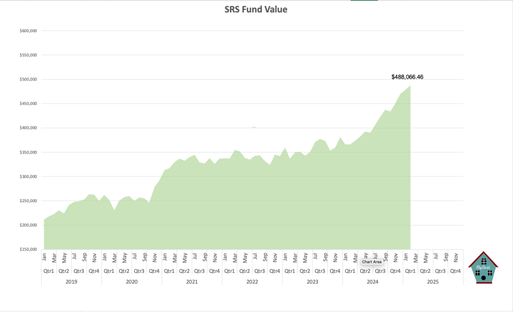 The SRS Fund value reached a record high of $488,066.46 as the upward trajectory gained momentum in the recent year. I would expect the trend to be in place notwithstanding any drawdown in The SRS Fund value.