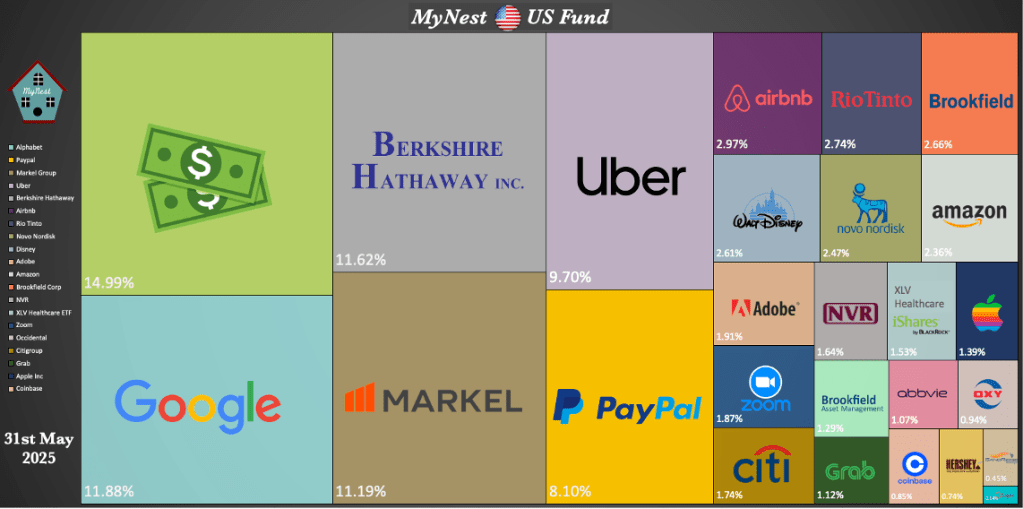 MyNest US Fund cash level continues to grow as family investors continue to show strong support for MyNest US Fund. I expect the Fund to take another round of funding in Jun to take cash to around the 20% mark. Any deployment of this newly injected cash, however, will depend on the availability of opportunities.
