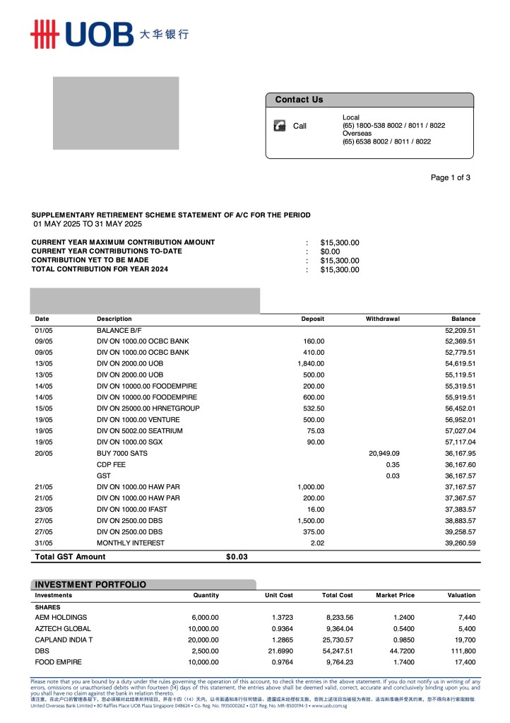 With some funds deployed to SATS, the SRS Fund levels stay at a comfortable 8%, allowing me to continue waiting for opportunities to arise if volatility continues to feature towards the 2nd half of the year.