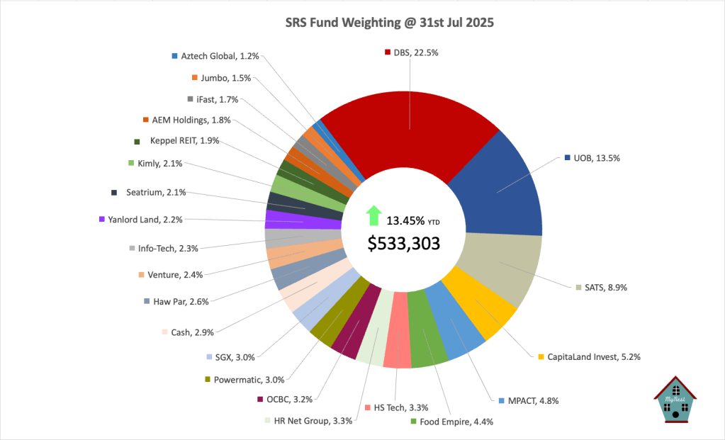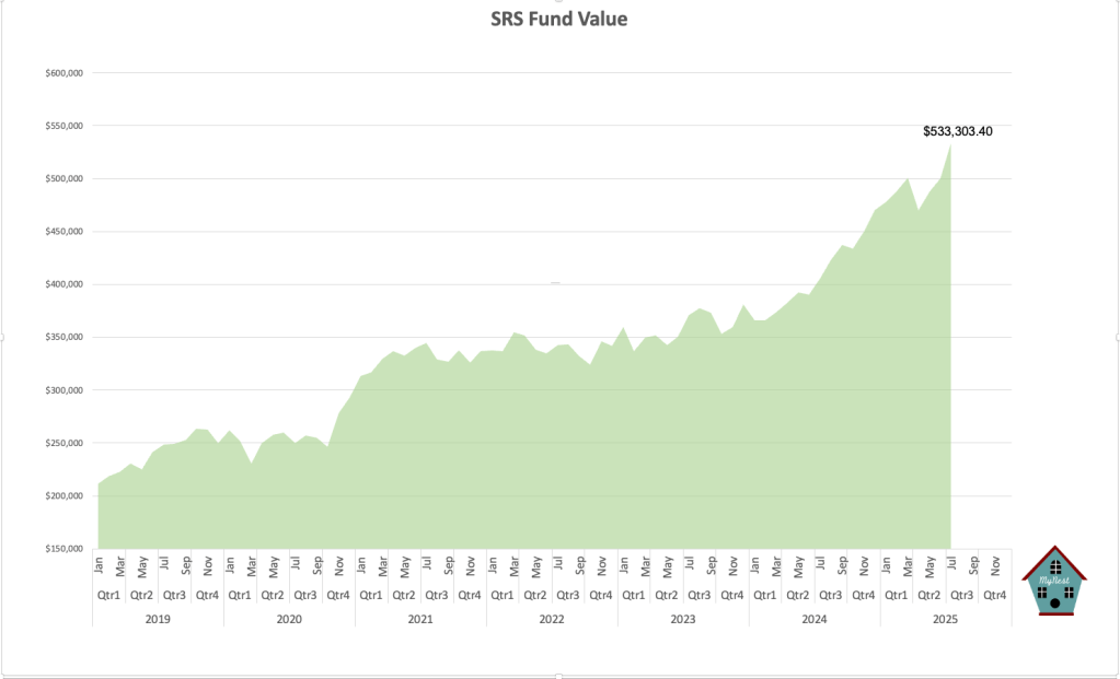 Total SRS Fund value hit another record high at $533,303.40. This is up 13.45% for the year versus the STI 10.1%.