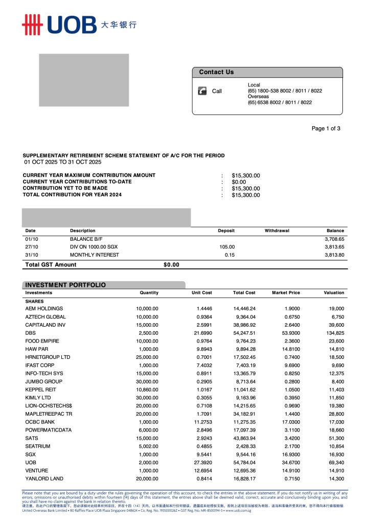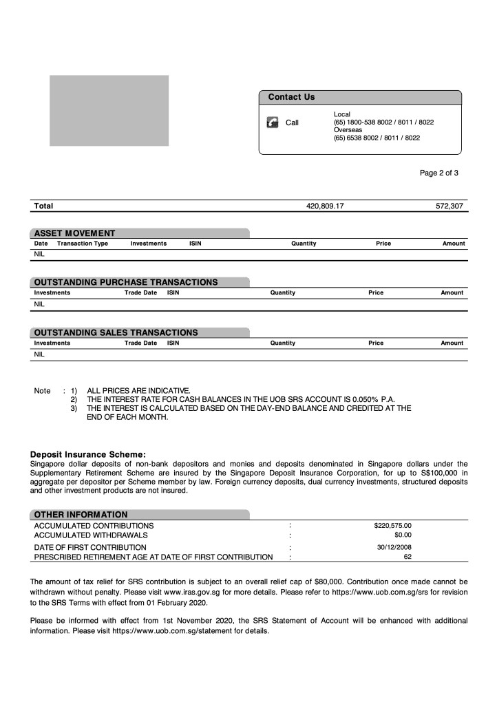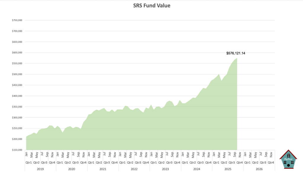 Total SRS Fund value hit another record high at $576,121.14. Hence, the $600k mark is now in sight and is a very real possibility, given the $15.3k contributions at year-end still to come.